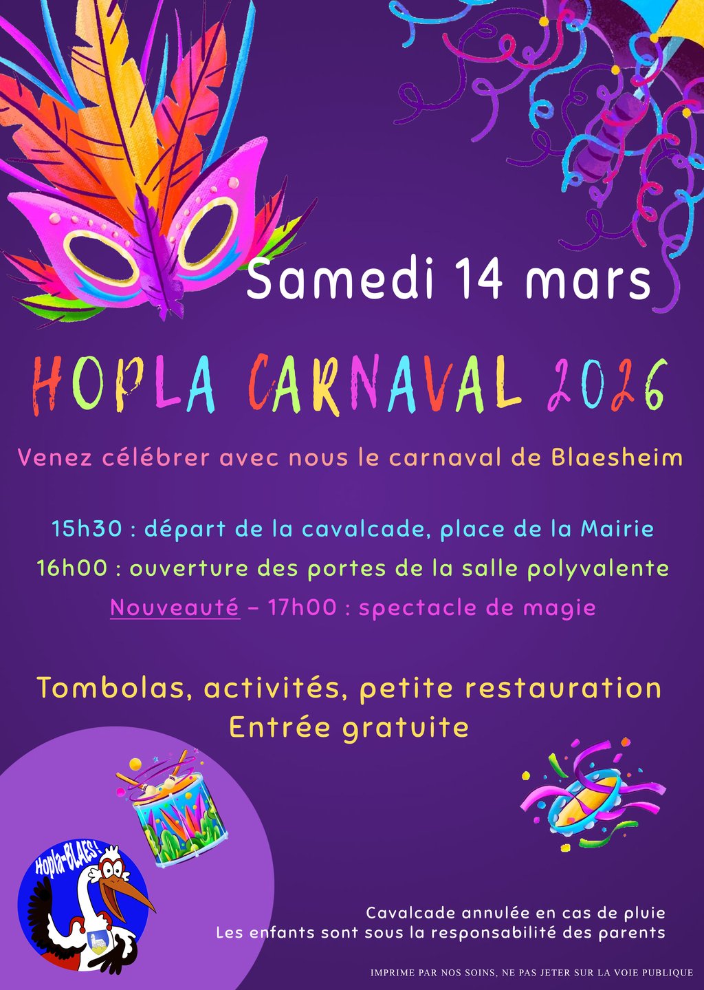 HOPLA' CARNAVAL est de retour et pour l'édition 2026 nous vous proposons une formule 100% famille avec 2 temps forts: